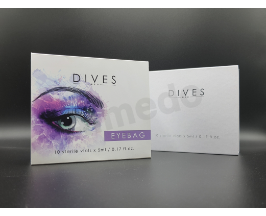 Dives med. Eye Bag to specjalistyczny produkt przeznaczony do mezoterapii okolic oczu. Niweluje obrzęki i torebki tłuszczowe. Redukuje worki pod oczami i drobne zmarszczki. Hamuje zastoje limfatyczne, poprawia napięcie skóry i widocznie odmładza.