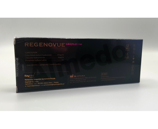Kwas hialuronowy 24 mg/ml, lidokaina 0,3 %, <0,0015 EU/mg. Wypełniacze REGENOVUE zawierają bardzo niskie stężenie endotoksyn. Dopuszczalny poziom endotoksyn w UE wynosi 12,5 EU/mg.