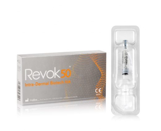 Revok50® to materiał medyczny klasy III z certyfikatem do injekcji. Biostymuluje regenerację skóry twarzy i szyi wskazującej oznaki starzenia lub profilaktycznie jako terapia przeciwdziałająca powstawaniu zmian. Evok50 jest wytwarzany podobnie jak Ejal40 z łańcuchów o jednakowej długości 1.6 miliona Daltonów. Sposób podawania: klasyczna mezoterapia lub tak samo jak Ejal. W tym drugim przypadku należy zadbać o rozmasowanie bolusa bo produkt jest gęsty.