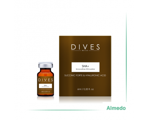 Dives Med – SHA+ to zaawansowany preparat o efektownym działaniu odmładzającym, przeznaczony do modelowania tkanek oraz rekonstrukcji kolagenu. Formuła zawiera innowacyjny kwas bursztynowy, który został wzbogacony w wysokocząsteczkowy konglomerat kwasu hialuronowego oraz kompleks aminokwasowy. Synergiczne połączenie wyselekcjonowanych komponentów, programuje tkanki do natychmiastowej redermalizacji oraz pobudza energię mitochondrialną ATP, usprawniając procesy fizjologicznej odbudowy struktur skórnych i regenerację matrycy kolagenowej skóry. SHA+ pozytywnie wpływa na gęstość oraz spoistość skóry, poprawia nawodnienie tkanek, oraz chroni DNA komórek przed stresem oksydacyjnym dając oszałamiające efekty redukcji zmarszczek a także odmłodzenia. Dzięki kompleksowemu działaniu, formuła pomaga opóźnić atrofię tkanek, pozwala zminimalizować widoczne zmiany starzeniowe a także pozwala odzyskać utracony blask.