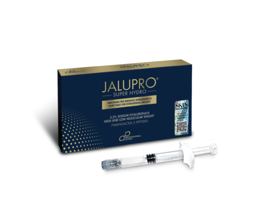 Jalupro SuperHydro to preparat szwajcarskiej firmy zawierający 80 mg kwasu hialuronowego o dwóch różnych masach cząsteczkowych, 7 aminokwasów oraz 3 peptydy biomimetyczne. Skład zapewnia efekt liftingu oraz nawilżenia skóry. Dzięki kombinacji aminokwasów produkt wspomaga syntezę kolagenu i elastyny w strukturach skóry poprawiając jej gęstość i napięcie. Jalupro SuperHydro regeneruje i rewitalizuje komórki skóry oraz wygładza drobne zmarszczki i zmarszczki mimiczne.