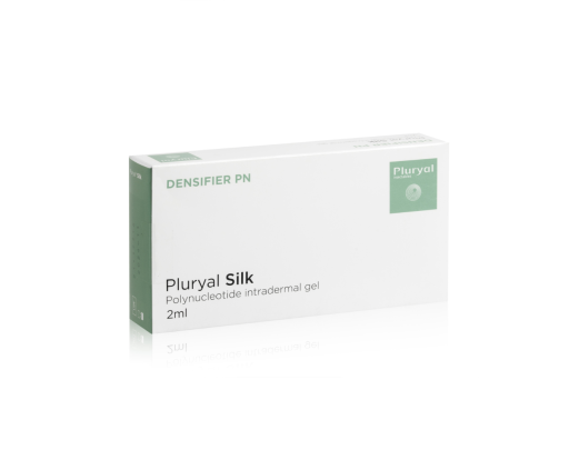 Pluryal Silk to wiskoelastyczny, niepirogenny preparat przeznaczony do rewitalizacji i regeneracji skóry. Zawarte w składzie polinukleotydy w stężeniu 7,5mg/ml nadają się do zabiegów we wrażliwych i delikatnych miejscach, takich jak: szyja, dekolt czy okolice oka. Przeprowadzenie pełnego protokołu zabiegowego powoduje poprawę napięcia, wygładzenie, wzrost syntezy kolagenu i elastyny oraz nawilżenie skóry. Cera odzyskuje naturalny zdrowy wygląd.
