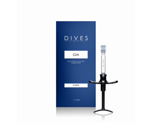 DIVES med GIA Forte to stymulator tkankowy o wzmocnionej formule, zawierający hydrolizowany kwas hialuronowy w stężeniu 25 mg/ml oraz kompleks dziewięciu form kolagenu w stężeniu 10 mg/ml. Preparat zapewnia intensywną biorestrukturyzację, nawilżenie i remodeling skóry z widocznym efektem liftingu.