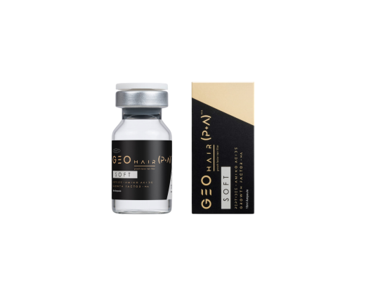 Geo-Hair (P+A) HA Soft to peptydowy stymulator trychologiczny przeciwdziałający nadmiernej utracie włosów, opracowany specjalnie do rewitalizacji i stymulacji owłosionej skóry głowy. Produkt jest dedykowany do zabiegów trychologicznych, szczególnie dla włosów osłabionych, cienkich i delikatnych, a także w profilaktyce łysienia i nadmiernej utraty włosów. Innowacyjna terapia dla zdrowych włosów Geo Hair Soft wykorzystuje synergiczne połączenie czynników wzrostu, peptydów, aminokwasów, hydrolizowanej keratyny oraz biotyny zawieszone w długo uwalniającym się kwasie hialuronowym. Ta zaawansowana formuła pobudza mieszki włosowe, przyspiesza i wydłuża fazę anagenu, oraz zapobiega nadmiernej utracie włosów poprzez inhibicję androgenów. Efektywnie przeciwdziała wypadaniu włosów Stosowanie Geo Hair Soft znacząco poprawia stan skóry głowy, pobudza wzrost włosów oraz ich silne zagęszczenie. Innowacyjna terapia celuje w najczęstsze przyczyny nadmiernej utraty włosów, zapewniając skuteczne i długotrwałe rezultaty.
